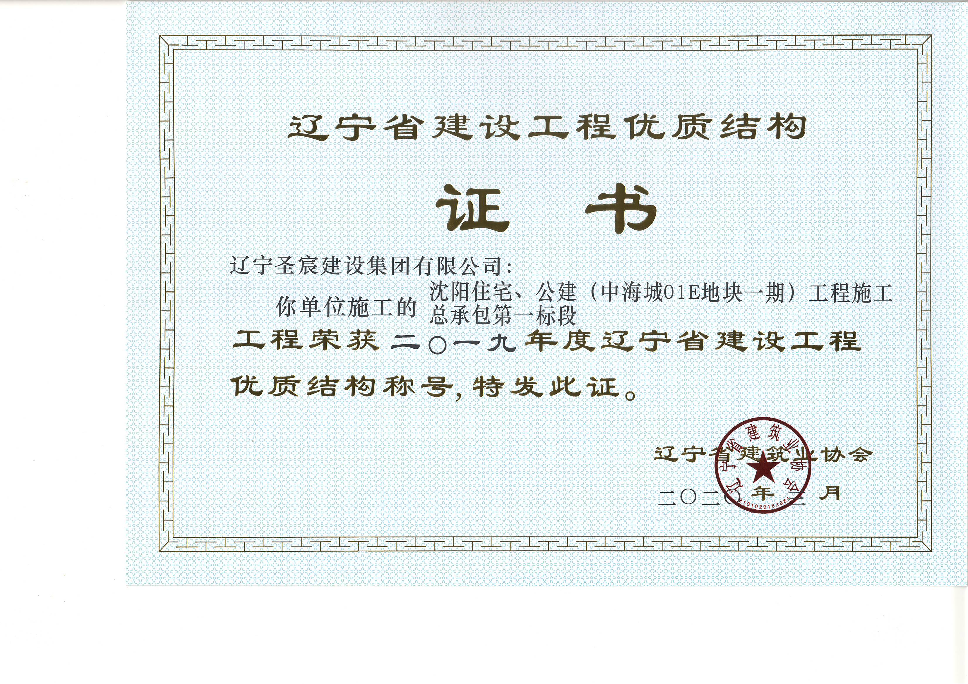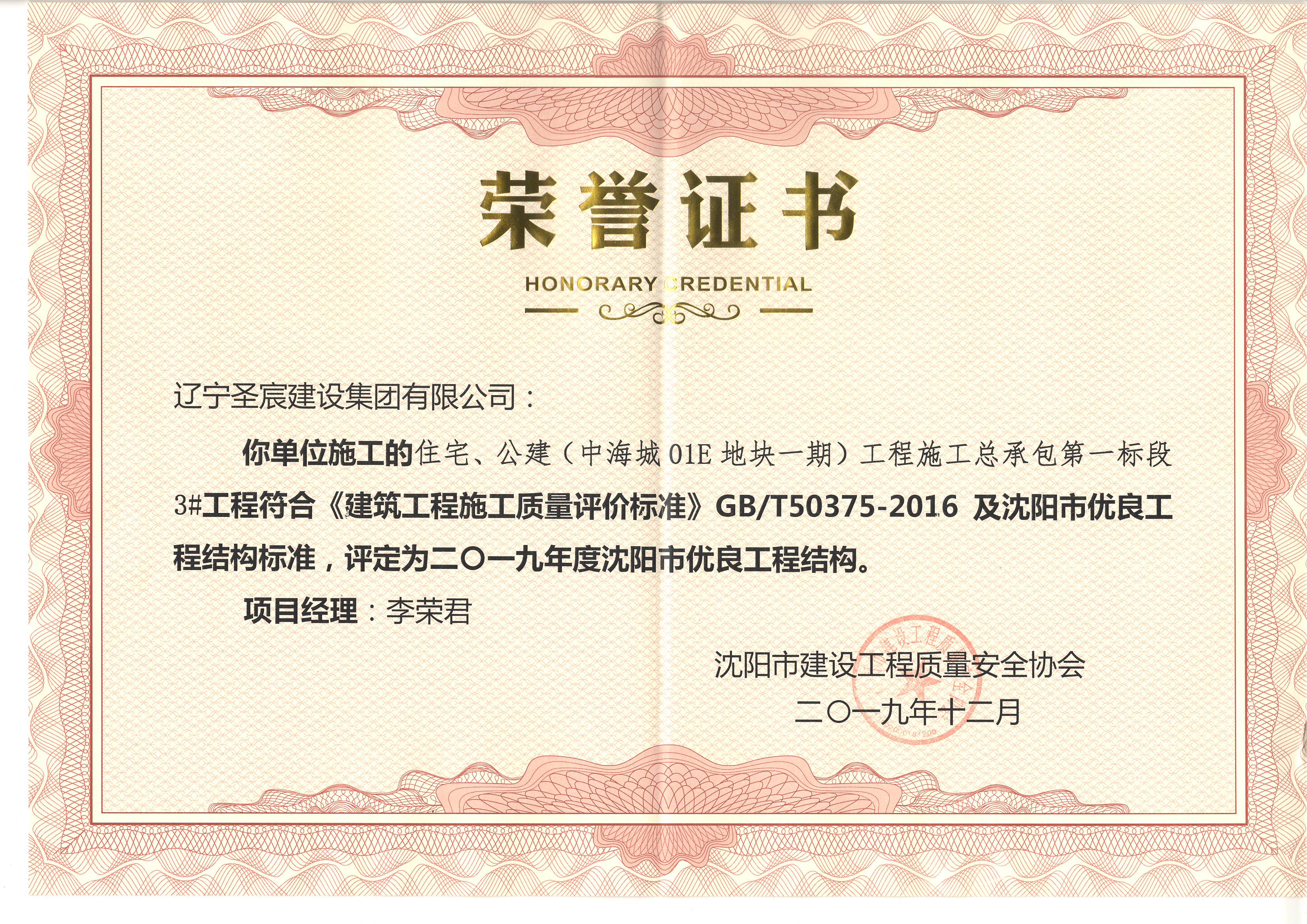 2019年度沈陽市優(yōu)良工程結(jié)構(gòu)-住宅、公建(中海城01E地塊一期)3#