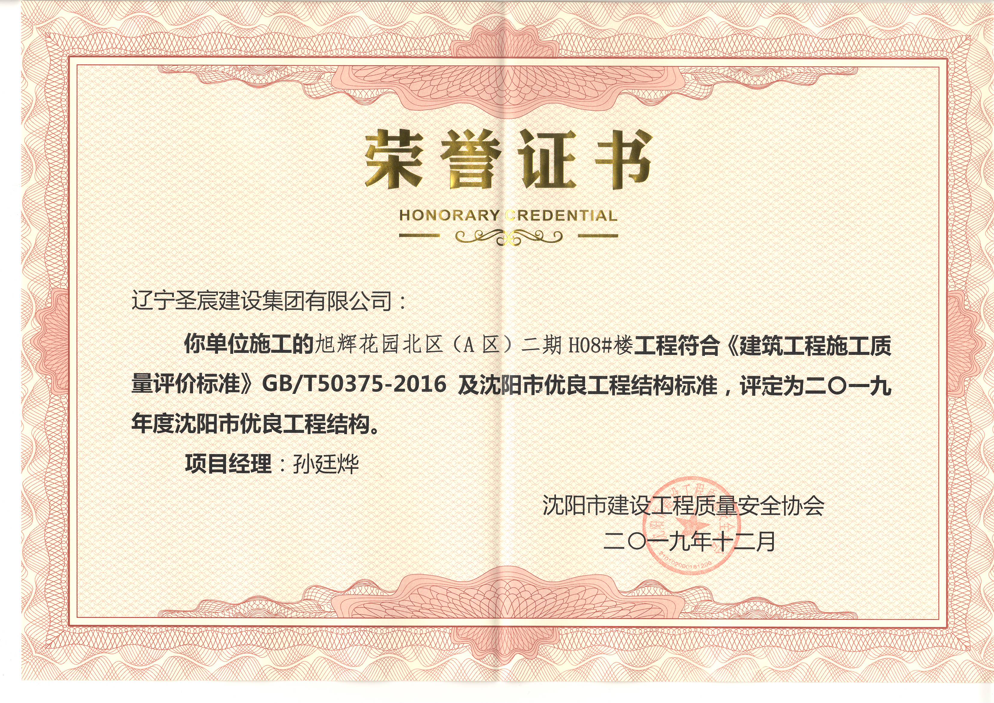 2019年度遼寧省建設(shè)工程優(yōu)質(zhì)結(jié)構(gòu)-旭輝花園北區(qū)(A區(qū))H08#