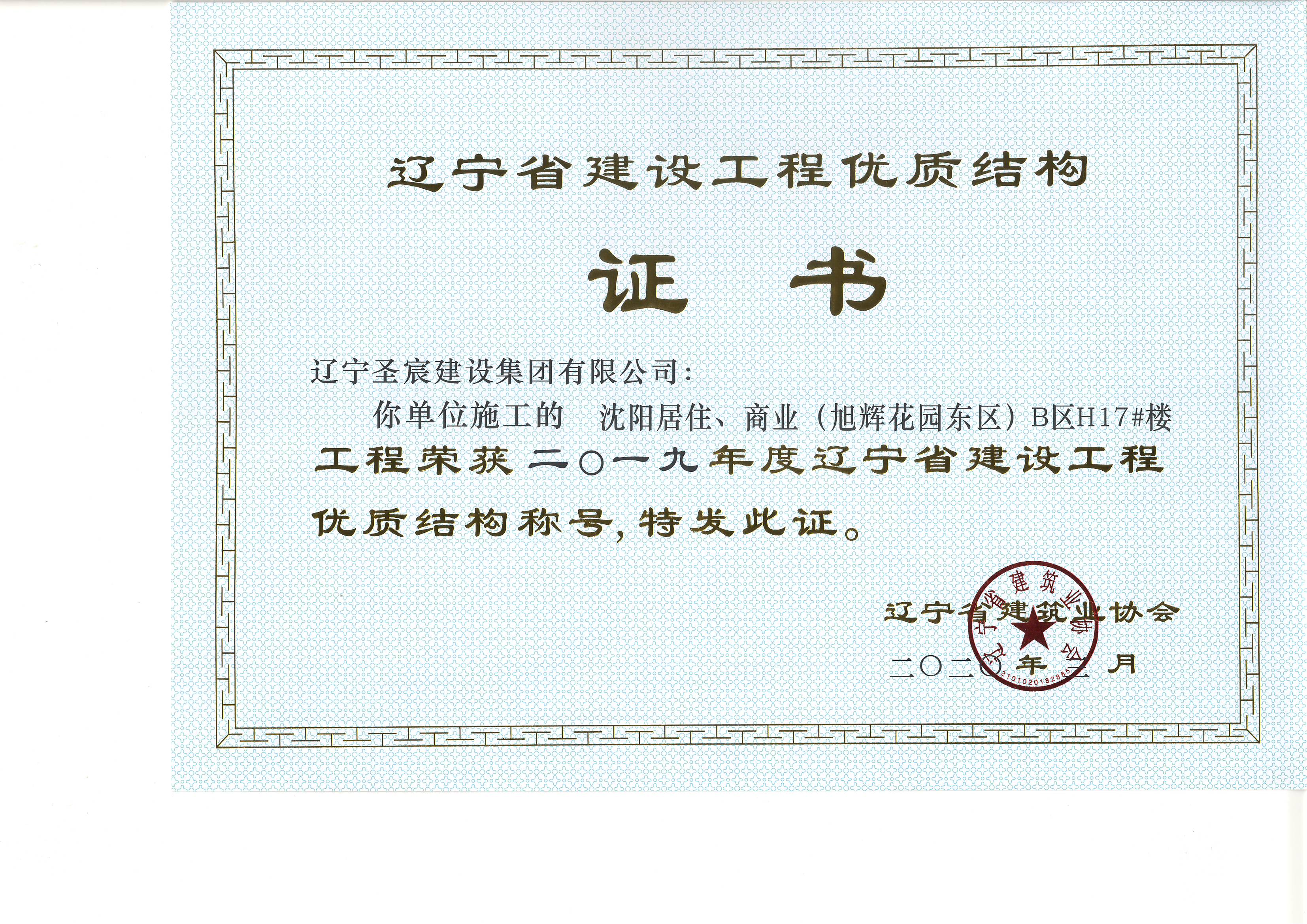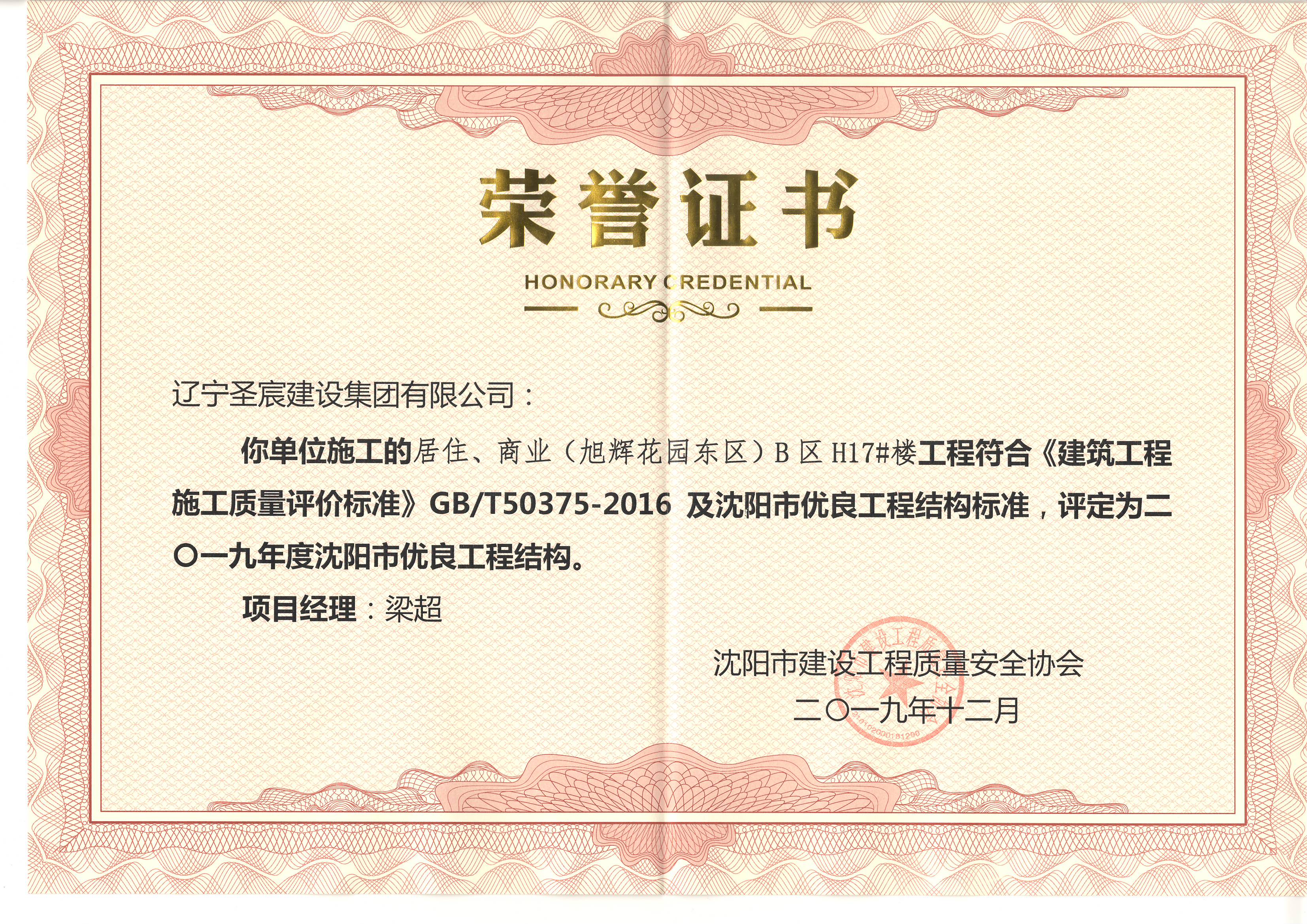 2019年度遼寧省建設(shè)工程優(yōu)質(zhì)結(jié)構(gòu)-旭輝花園東區(qū)(B區(qū))H17#