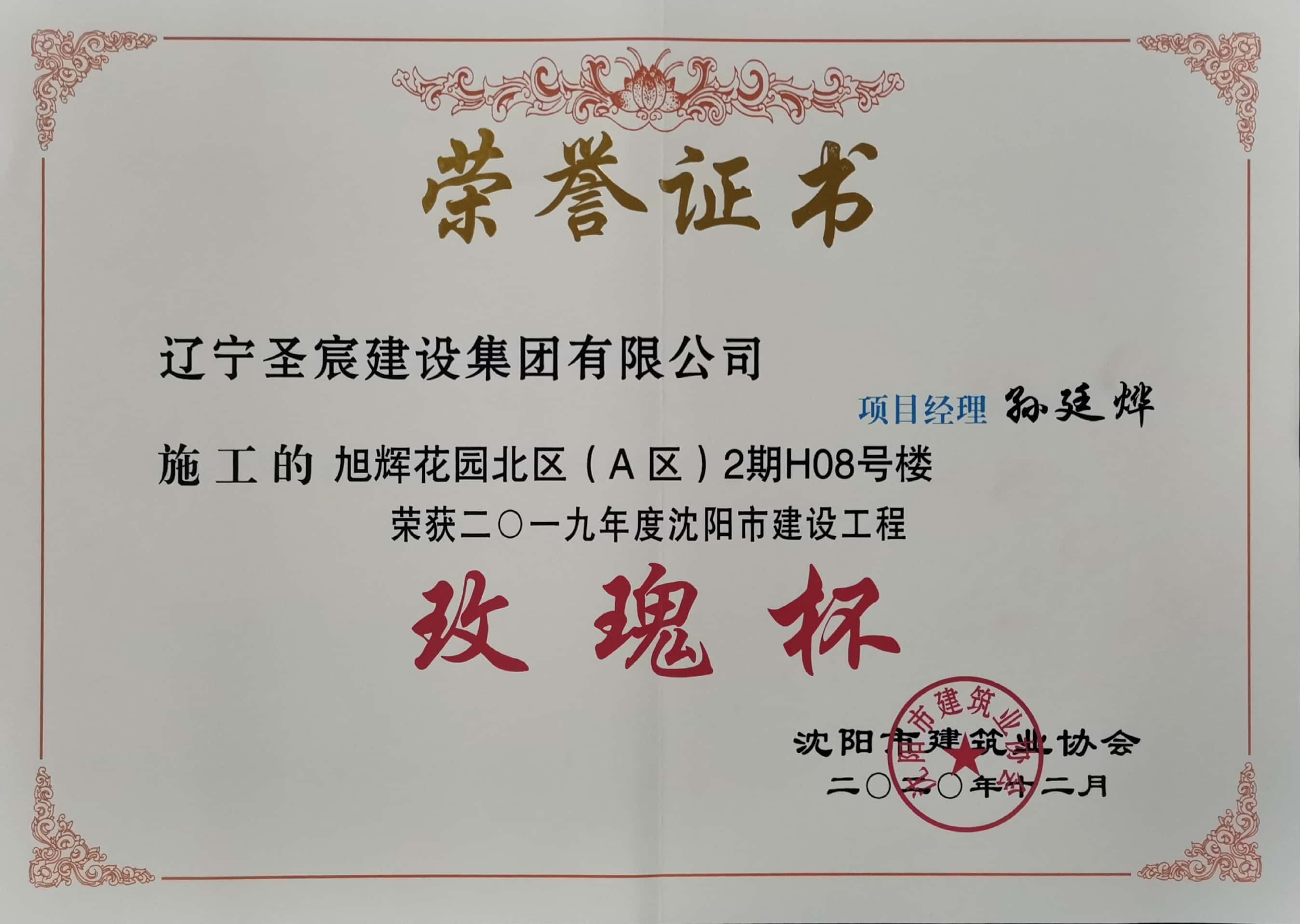 2019年度沈陽市建設(shè)工程玫瑰杯-旭輝花園北區(qū)(A區(qū))2期H08#
