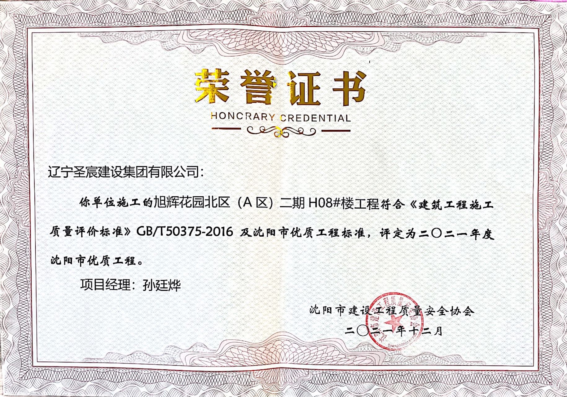 2021年度沈陽市優(yōu)質(zhì)工程-旭輝花園北區(qū)(A區(qū))二期H8#