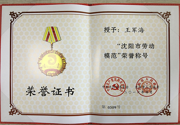 王軍海董事長(zhǎng)榮獲“沈陽(yáng)市勞動(dòng)模范”榮譽(yù)證書(shū)和獎(jiǎng)?wù)?/h3>