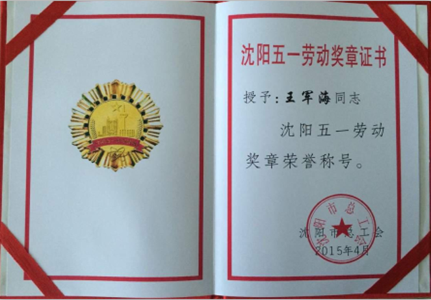 王軍海董事長(zhǎng)榮獲沈陽(yáng)市“五一”勞動(dòng)獎(jiǎng)?wù)聵s譽(yù)稱號(hào)